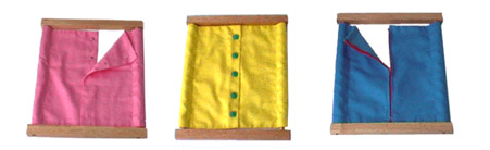 Wooden frame on which are pinned two flaps of cloth with a zip sewn in the middle between the flaps, holding them together....